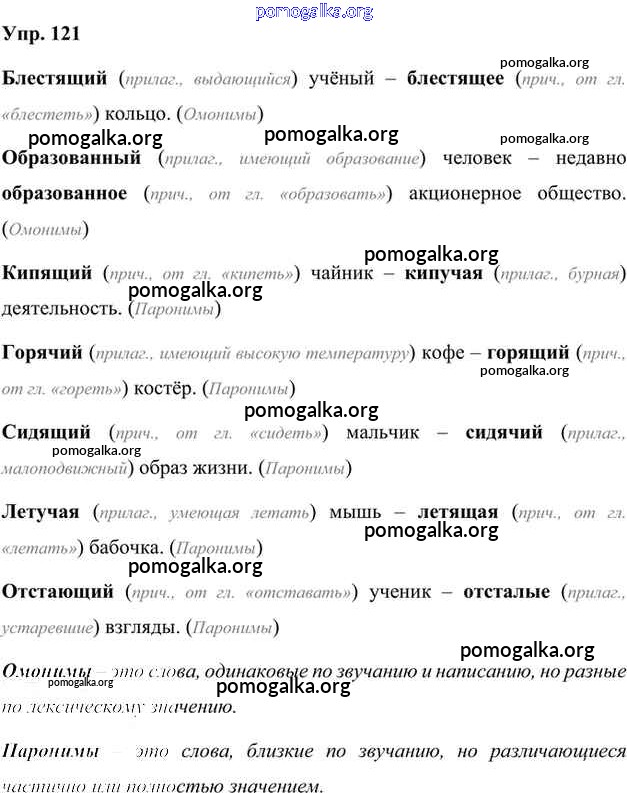 Готовые ответы - Русский язык 7 класс Быстрова Е.А. - упражнение часть 2 121