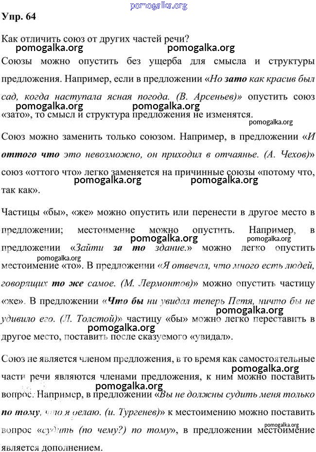 Готовые ответы - Русский язык 7 класс Быстрова Е.А. - упражнение часть 2 64