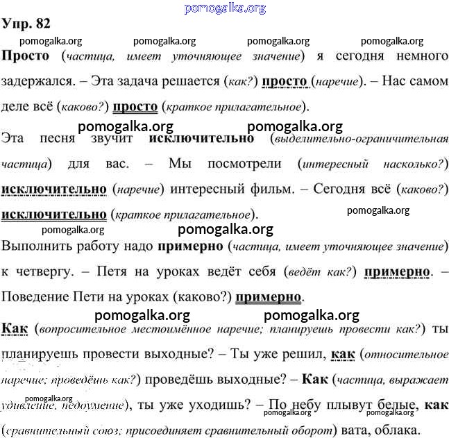 Готовые ответы - Русский язык 7 класс Быстрова Е.А. - упражнение часть 2 82