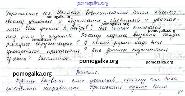 Готовые ответы - Русский язык 7 класс Баранов М.Т. - упражнение 102