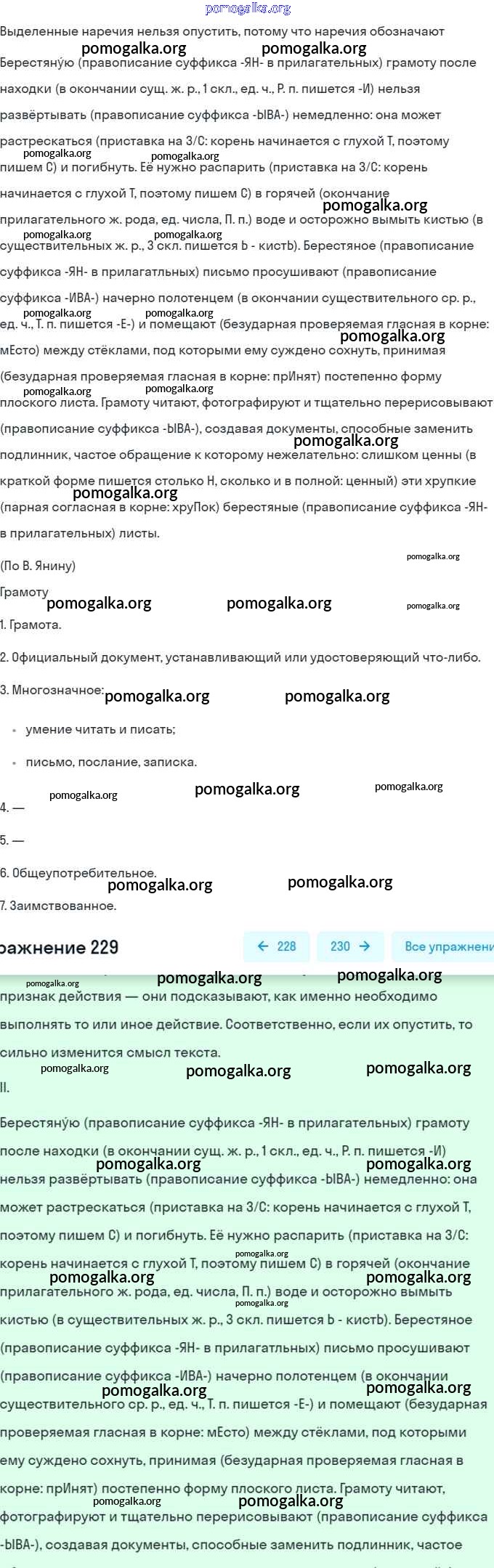 Готовые ответы - Русский язык 7 класс Баранов М.Т. - упражнение 229
