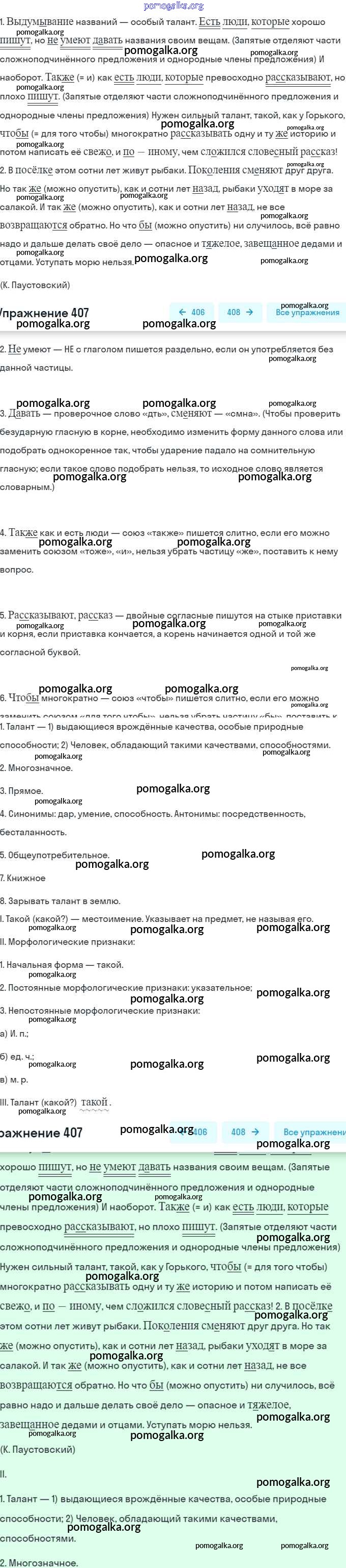 Готовые ответы - Русский язык 7 класс Баранов М.Т. - упражнение 407