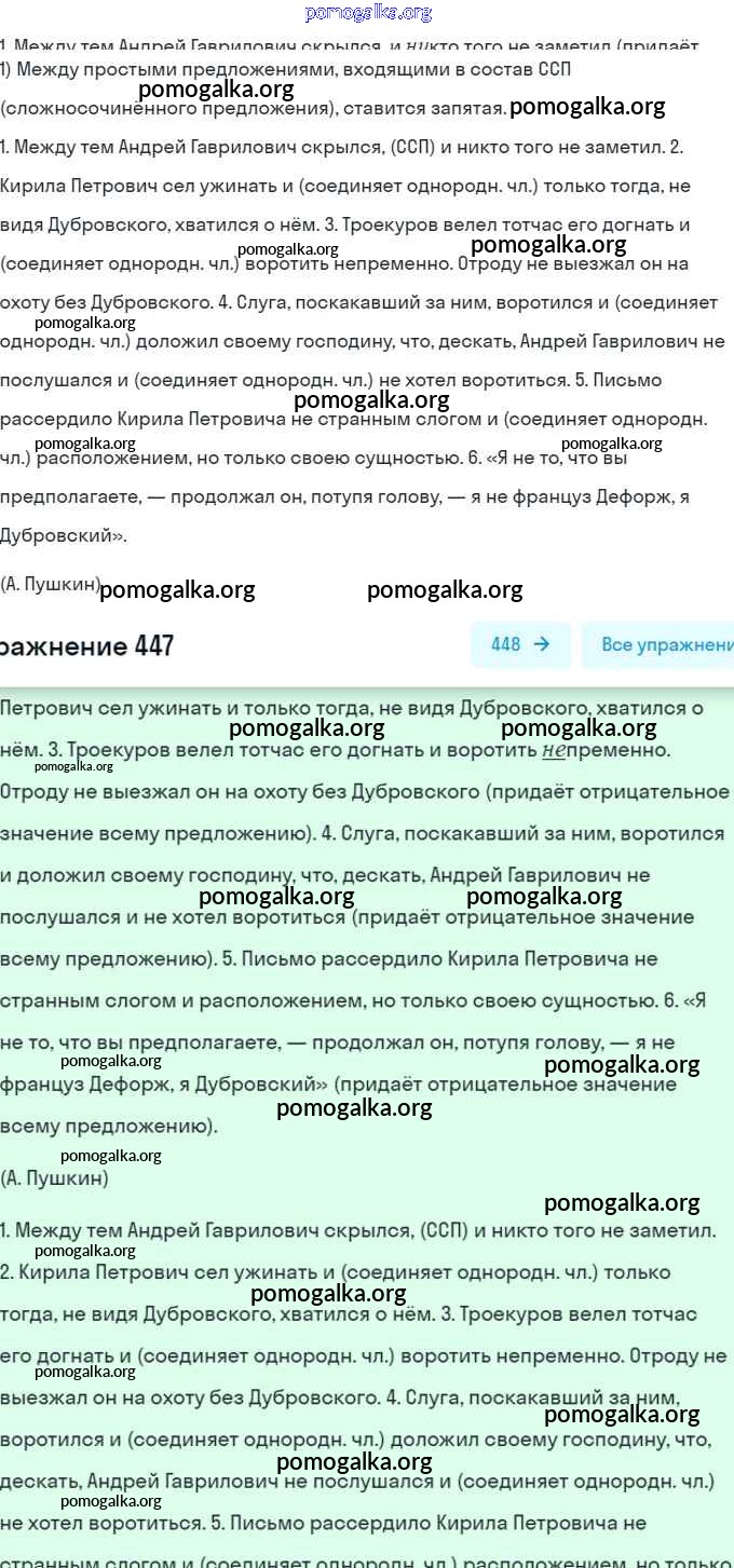 Готовые ответы - Русский язык 7 класс Баранов М.Т. - упражнение 447