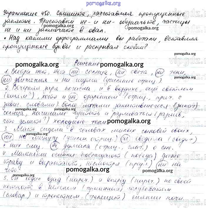 Готовые ответы - Русский язык 7 класс Баранов М.Т. - упражнение 450