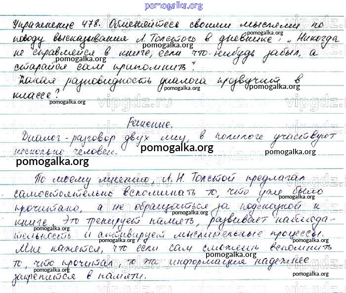 Готовые ответы - Русский язык 7 класс Баранов М.Т. - упражнение 478