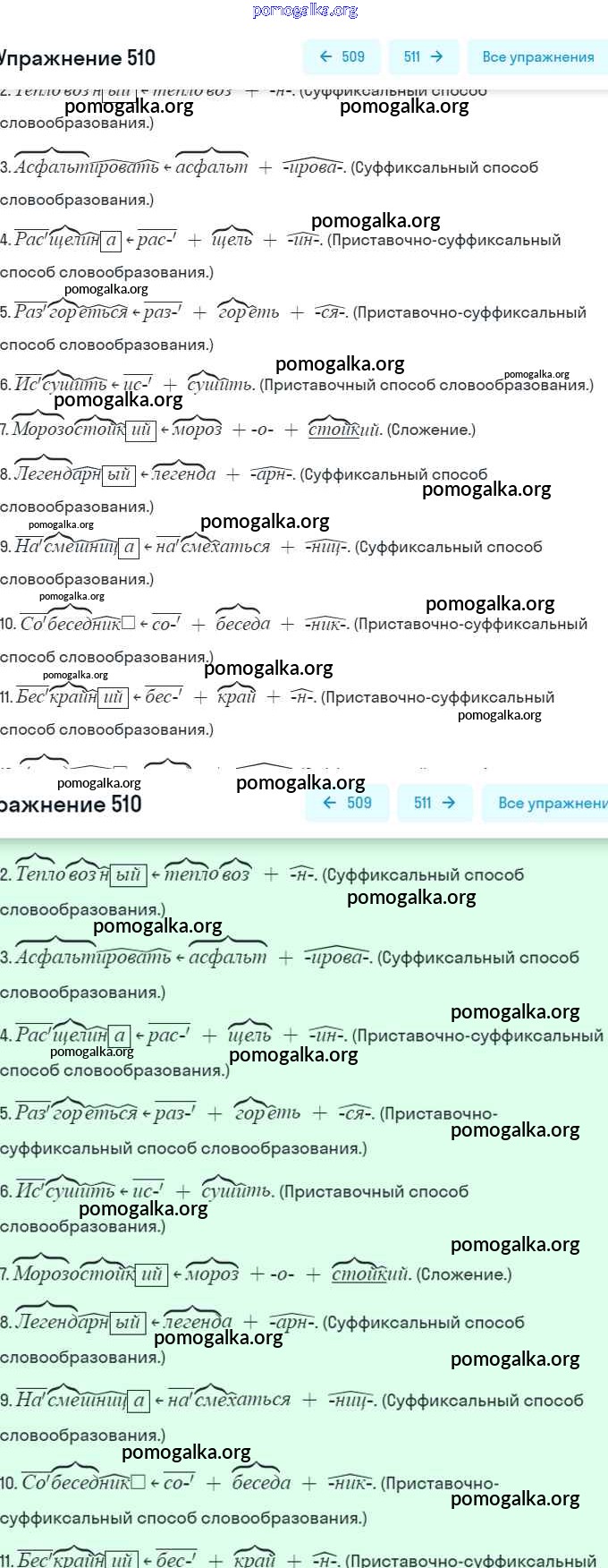 Готовые ответы - Русский язык 7 класс Баранов М.Т. - упражнение 510