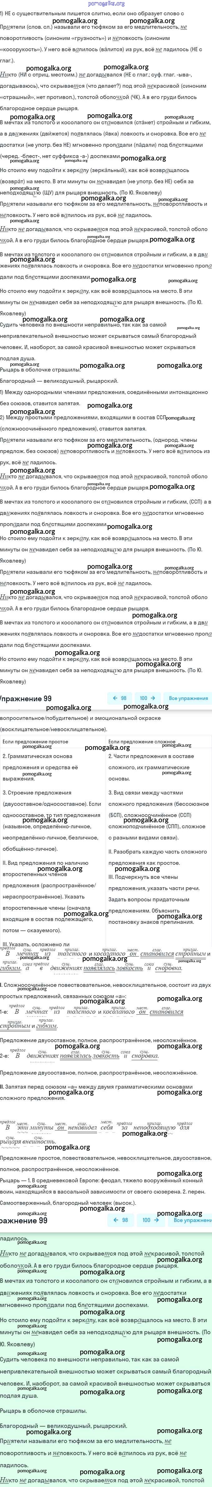Готовые ответы - Русский язык 7 класс Баранов М.Т. - упражнение 99
