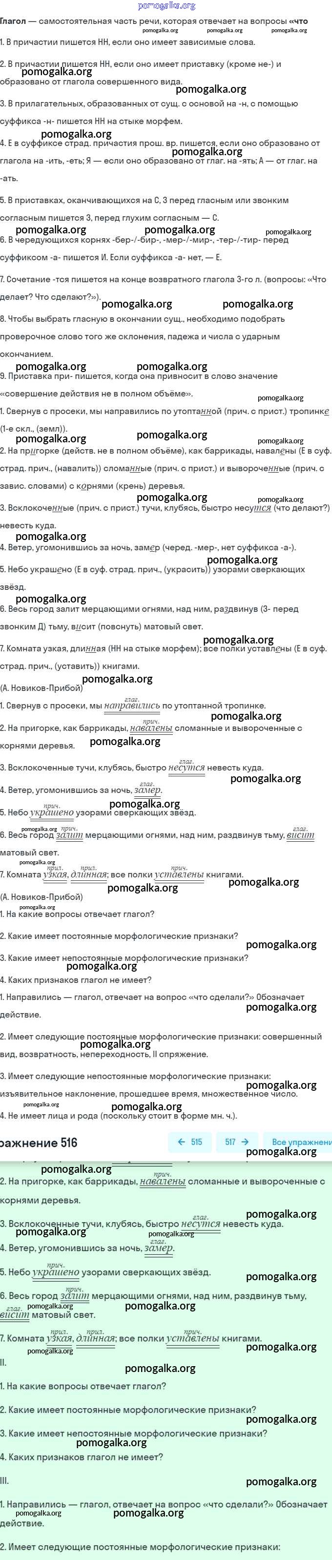 Готовые ответы - Русский язык 7 класс Баранов М.Т. - упражнение 516