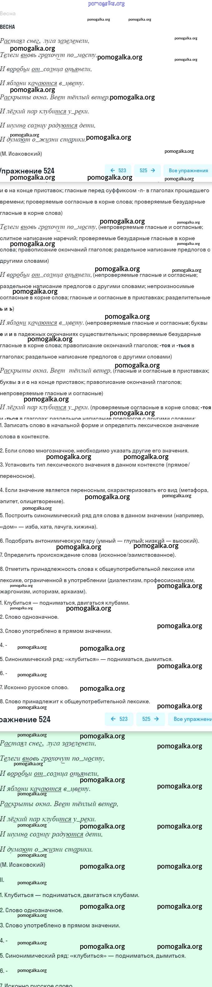Готовые ответы - Русский язык 7 класс Баранов М.Т. - упражнение 524