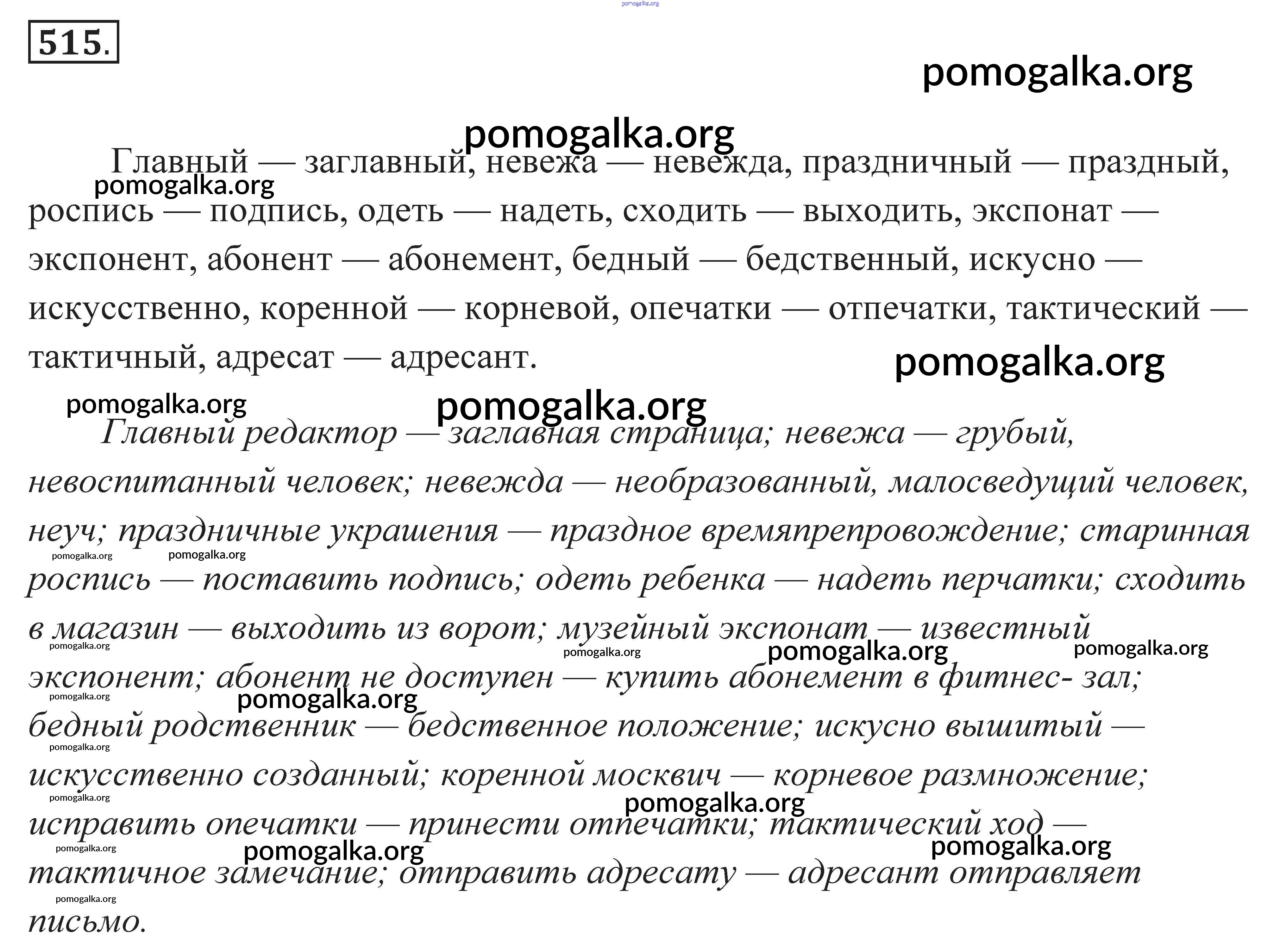 Готовые ответы - Русский язык. Практика 7 класс Пименова С.Н. - задание 515