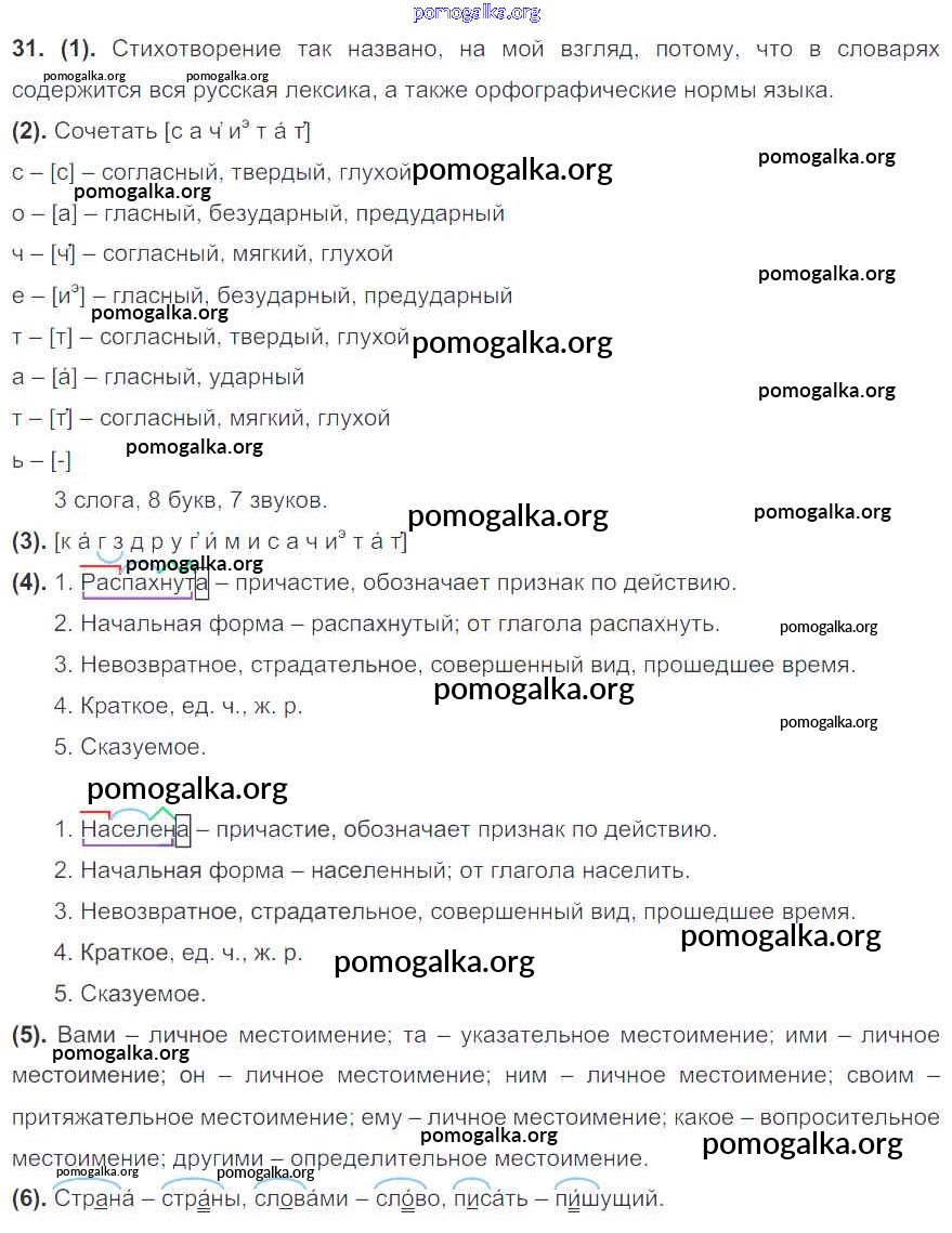 Готовые ответы - Русский язык 7 класс Разумовская М.М. - упражнение 31