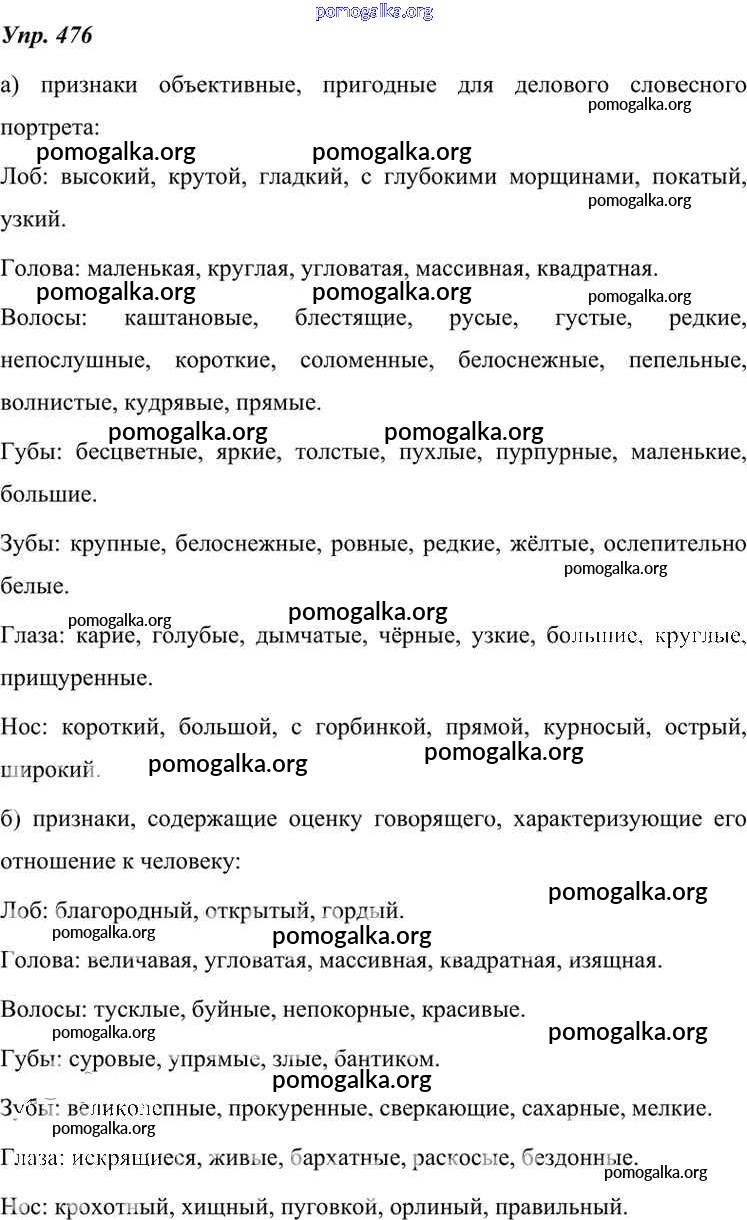 Готовые ответы - Русский язык 7 класс Разумовская М.М. - упражнение 476