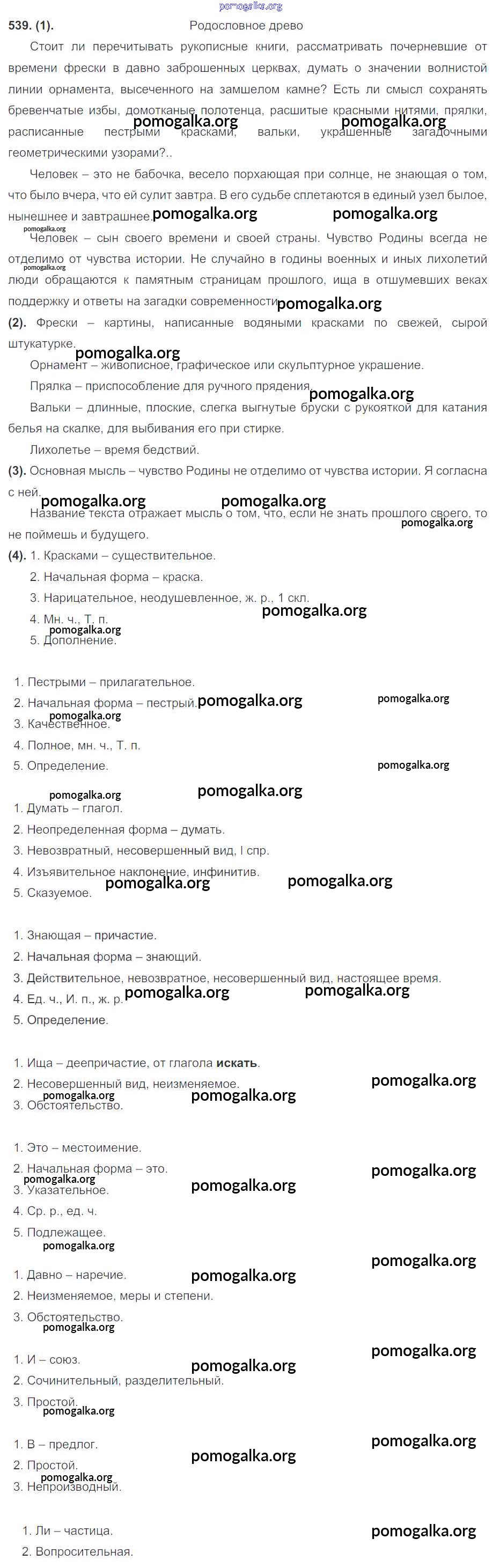 Готовые ответы - Русский язык 7 класс Разумовская М.М. - упражнение 539