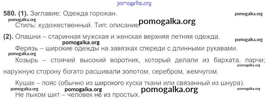 Готовые ответы - Русский язык 7 класс Разумовская М.М. - упражнение 580