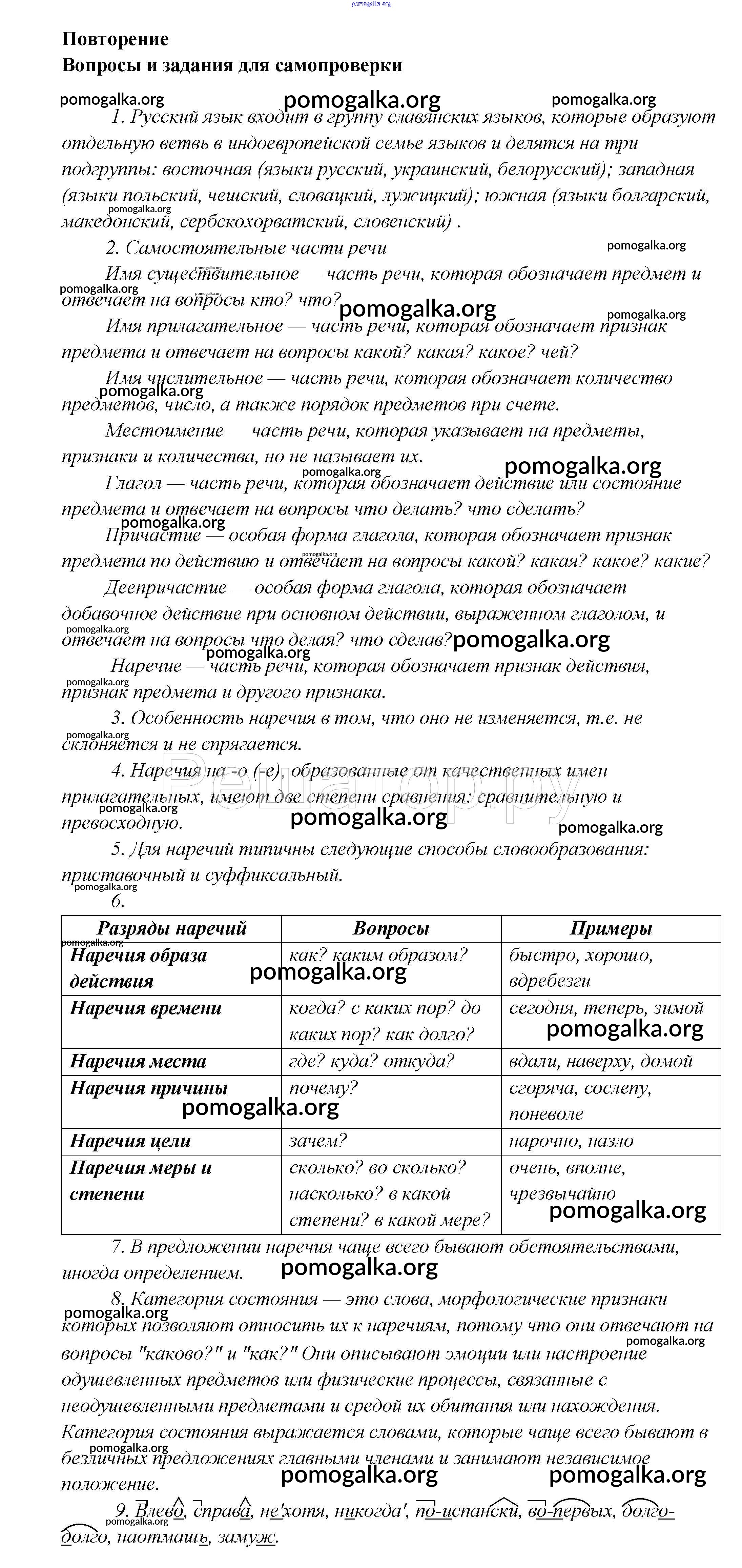 Готовые ответы - Русский язык 7 класс Шмелев А.Д. - повторение глава 3 1