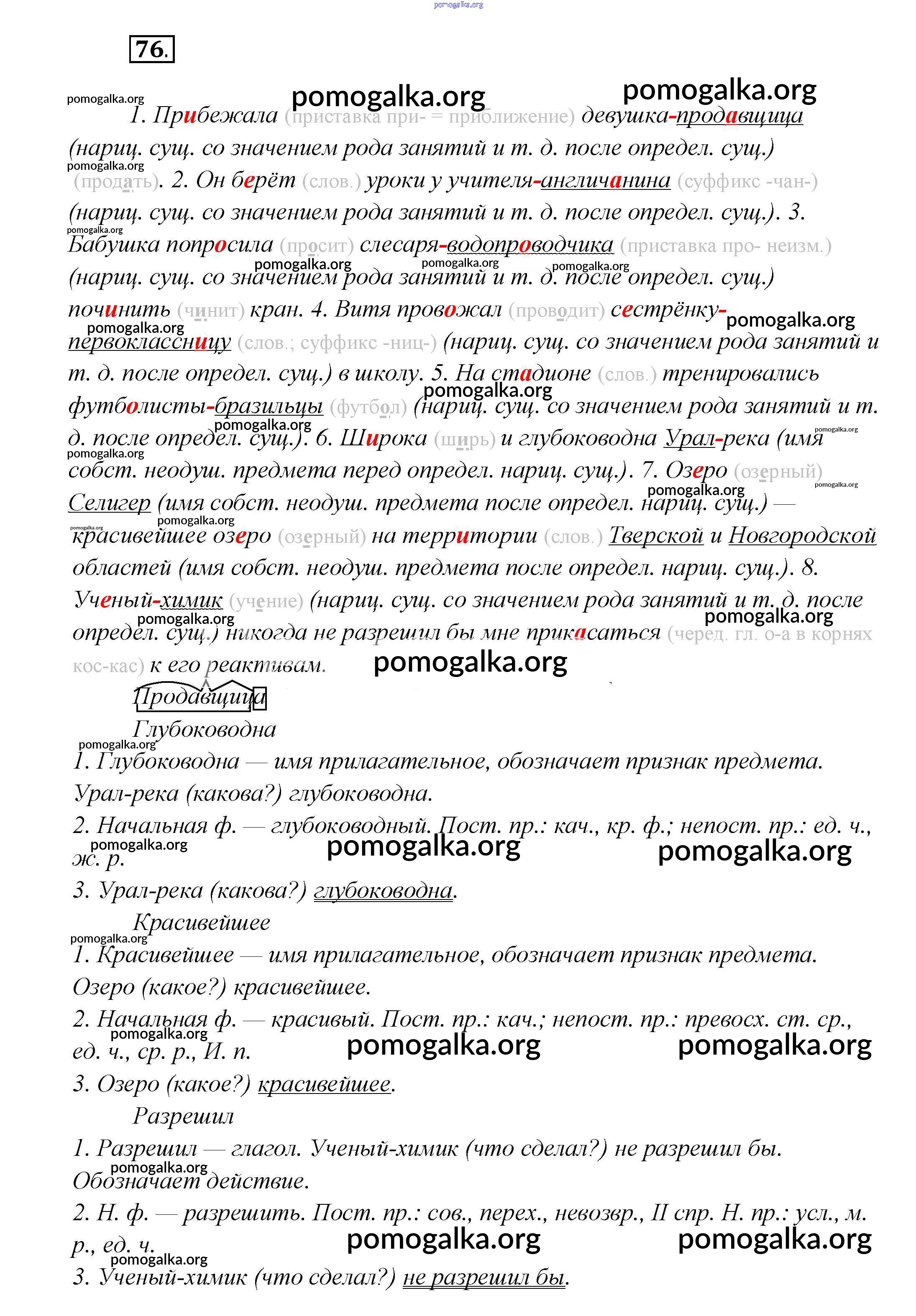 Готовые ответы - Русский язык 7 класс Шмелев А.Д. - глава 7 76