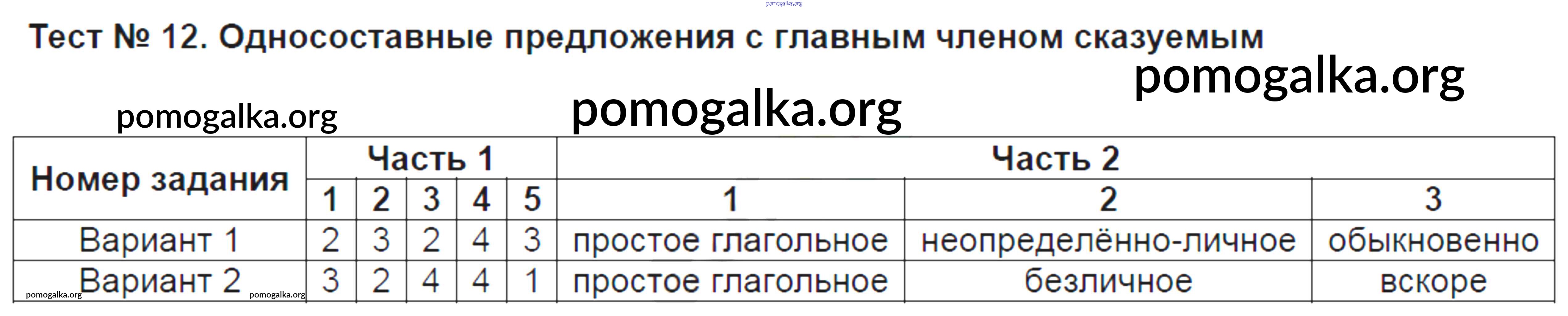 Готовые ответы - Русский язык 8 класс КИМ Никулина М.Ю. - тест 12