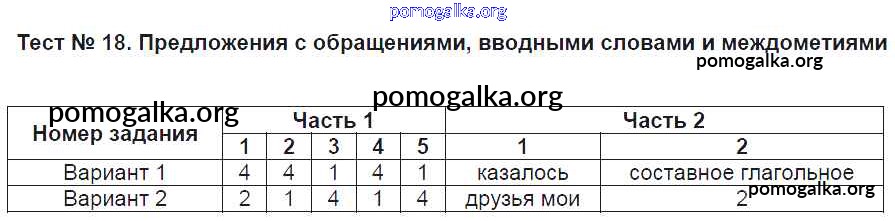 Готовые ответы - Русский язык 8 класс КИМ Никулина М.Ю. - тест 18