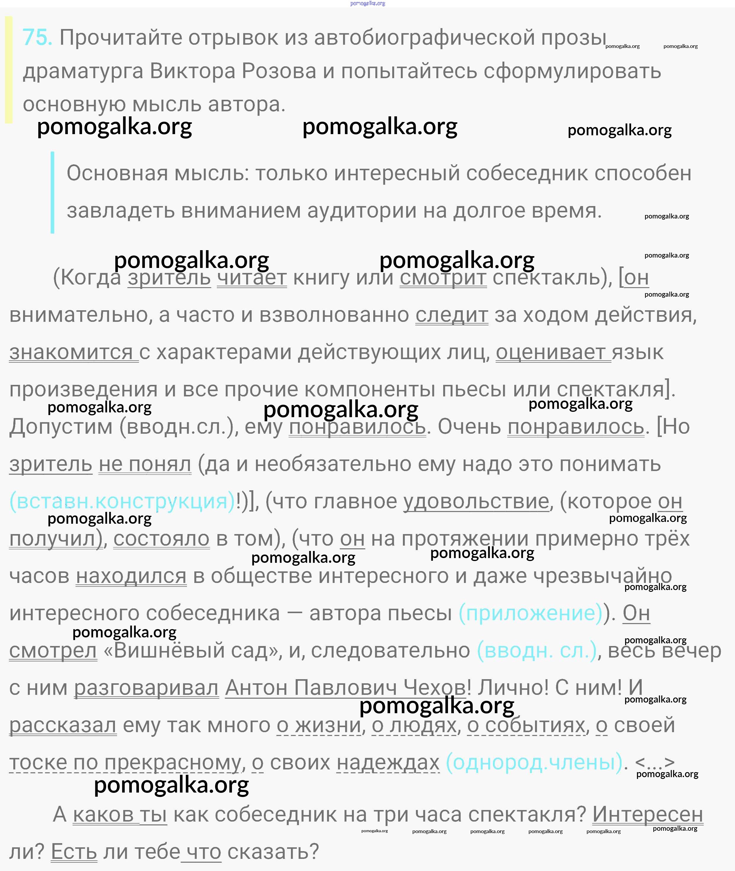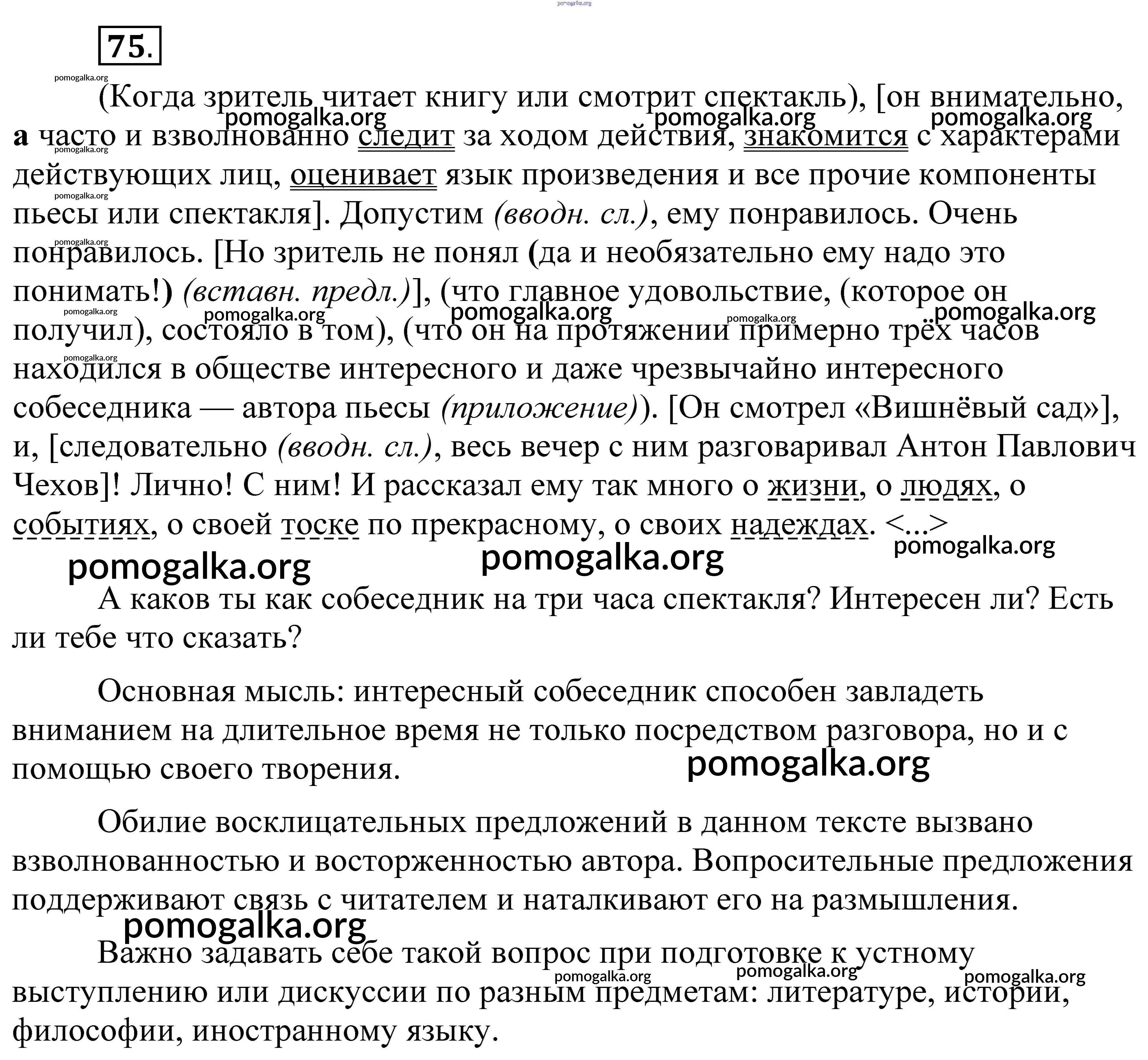 Готовые ответы - Русский язык. Практика 8 класс Пичугов Ю.С. - упражнение 75