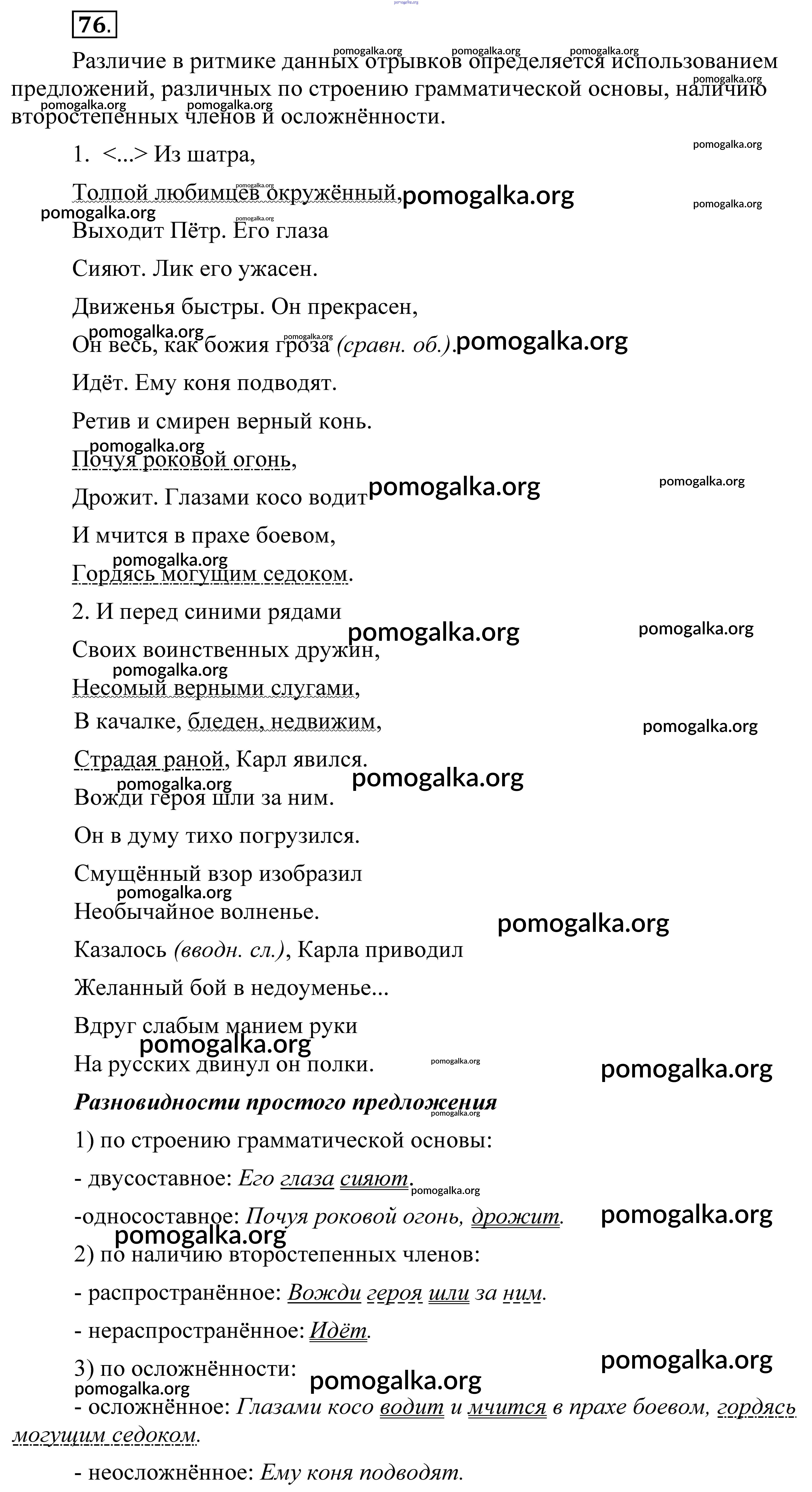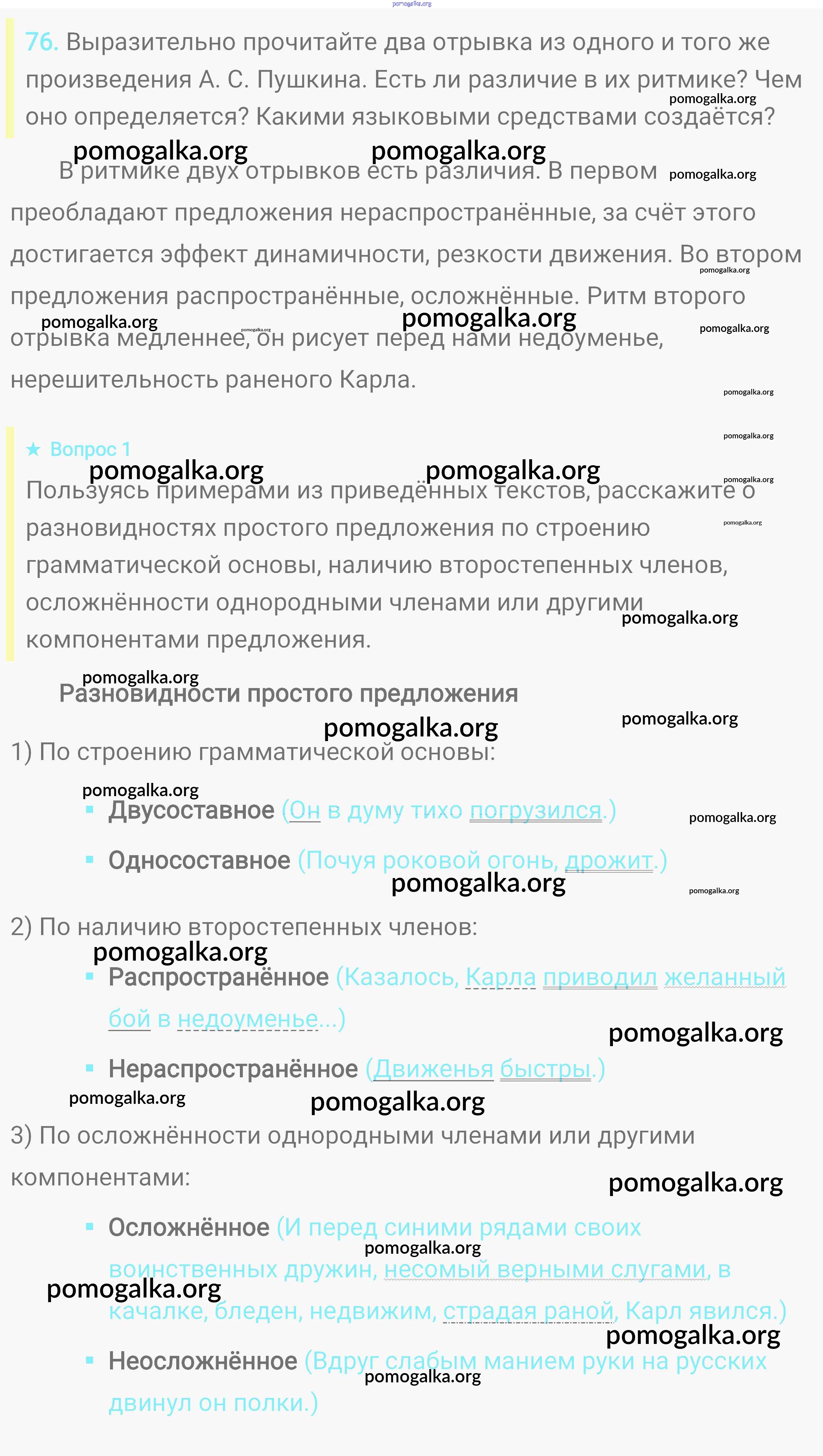 Готовые ответы - Русский язык. Практика 8 класс Пичугов Ю.С. - упражнение 76