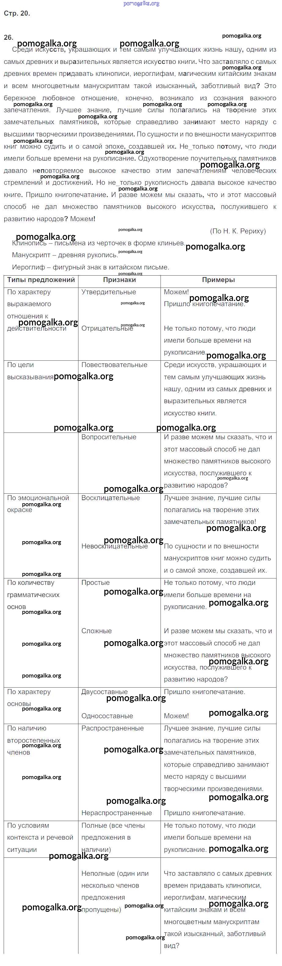 Готовые ответы - Русский язык 8 класс рабочая тетрадь Кулаева Л.М. (к уч. Разумовской) - упражнение 26