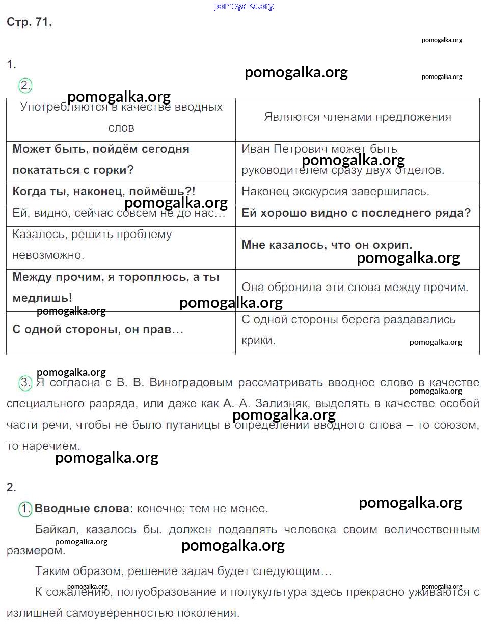 Готовые ответы - Русский язык 8 класс рабочая тетрадь Ерохина Е.Л. (к уч. Тростенцовой) - страница 71