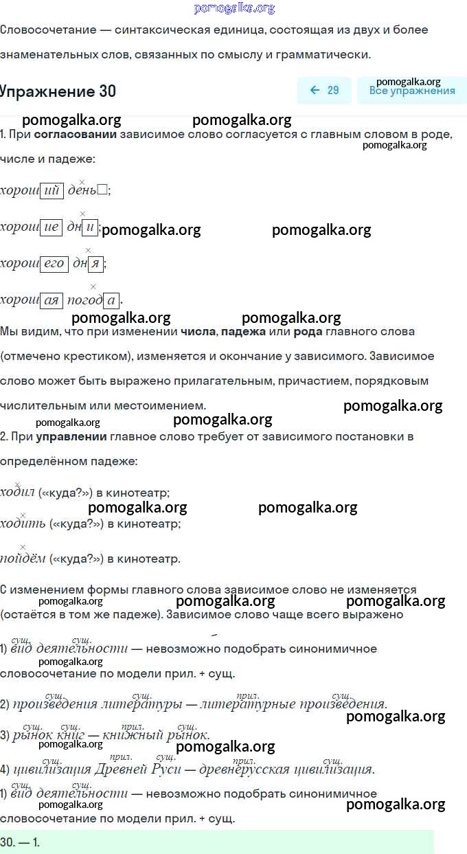 Готовые ответы - Русский язык 8 класс тесты, творческие работы, проекты Нарушевич А.Г. - вариант 2 словосочетание 30