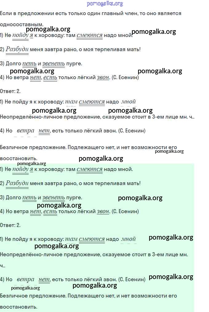 Готовые ответы - Русский язык 8 класс тесты, творческие работы, проекты Нарушевич А.Г. - вариант 1 односоставные предложения 5