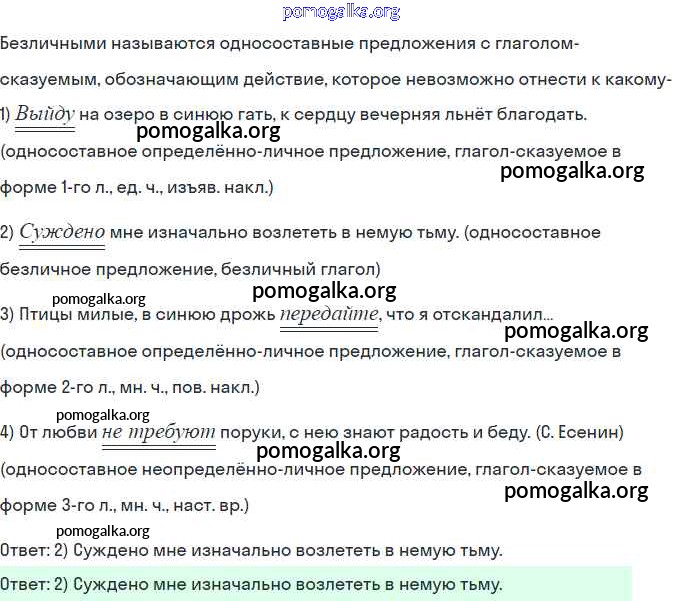 Готовые ответы - Русский язык 8 класс тесты, творческие работы, проекты Нарушевич А.Г. - вариант 2 односоставные предложения 15