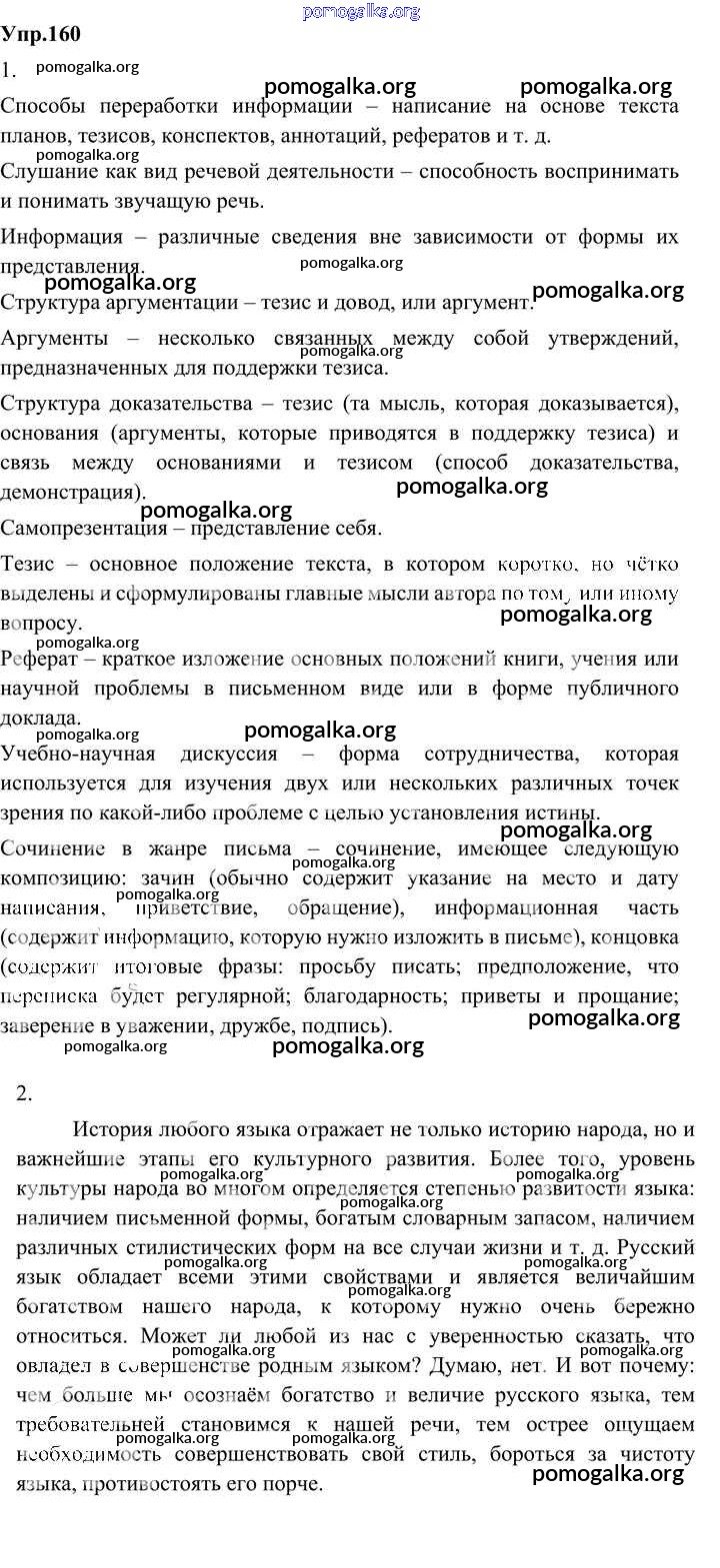 Готовые ответы - Русский родной язык 8 класс Александрова О.М. - упражнение 160
