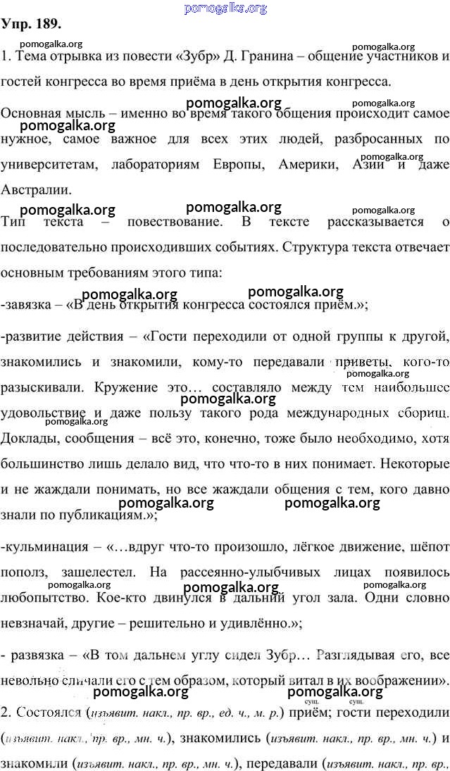 Готовые ответы - Русский язык 8 класс Быстрова Е.А. - упражнение часть 1 189