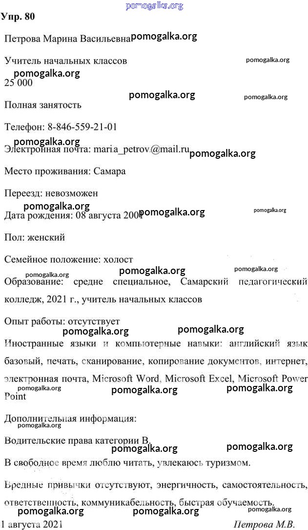 Готовые ответы - Русский язык 8 класс Быстрова Е.А. - упражнение часть 1 80