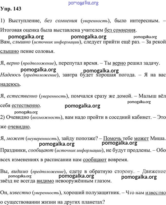 Готовые ответы - Русский язык 8 класс Быстрова Е.А. - упражнение часть 2 143