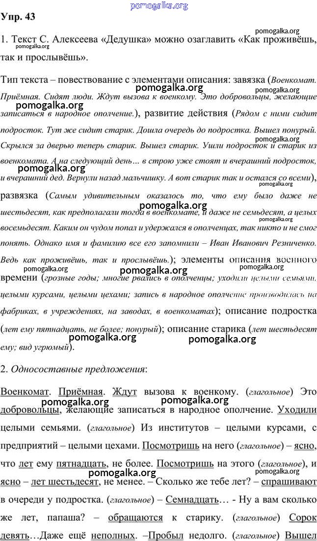 Готовые ответы - Русский язык 8 класс Быстрова Е.А. - упражнение часть 2 43