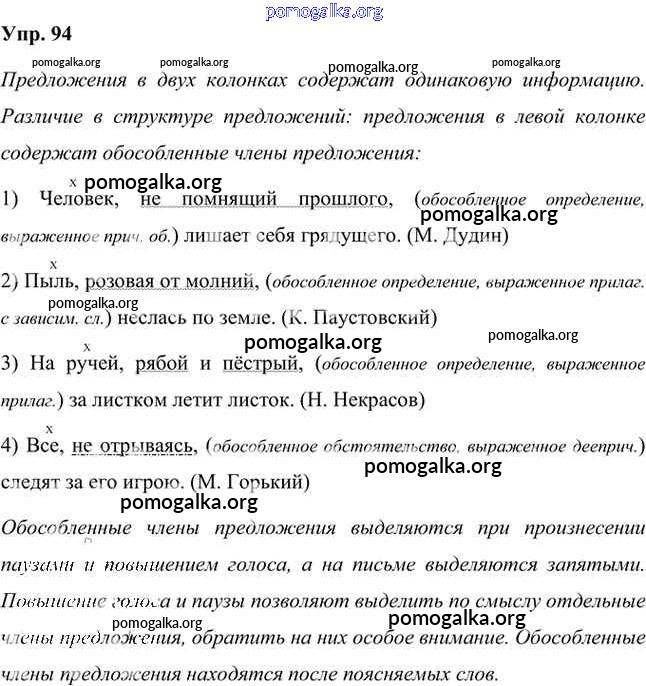 Готовые ответы - Русский язык 8 класс Быстрова Е.А. - упражнение часть 2 94