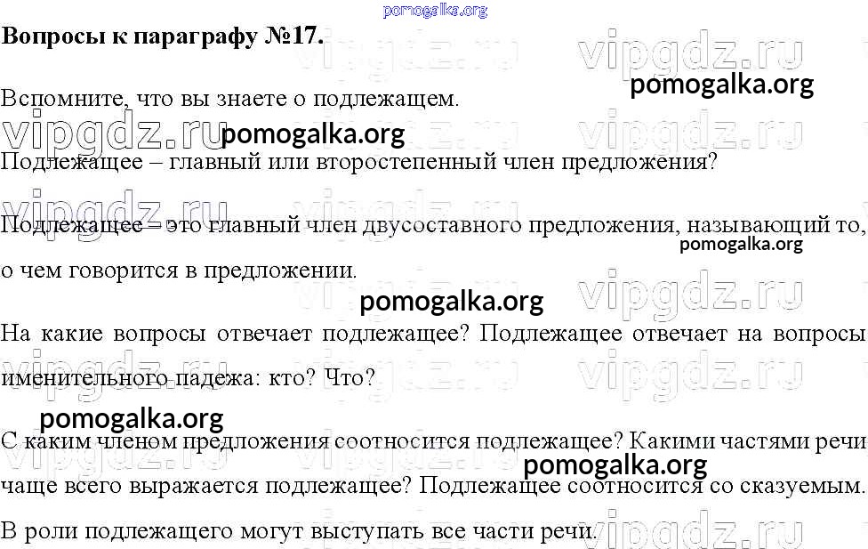 Готовые ответы - Русский язык 8 класс Тростенцова Л.А. - вопросы к параграфам §17