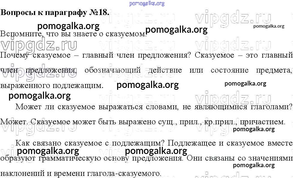 Готовые ответы - Русский язык 8 класс Тростенцова Л.А. - вопросы к параграфам §18