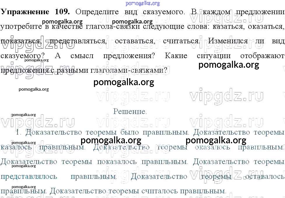 Готовые ответы - Русский язык 8 класс Тростенцова Л.А. - упражнение № 109