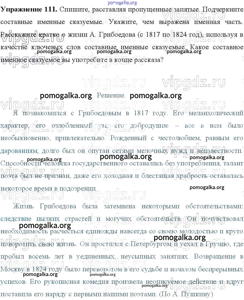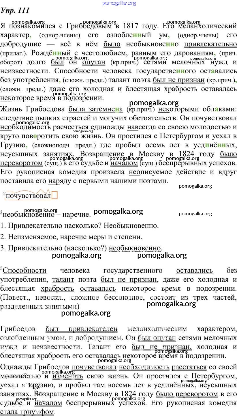 Готовые ответы - Русский язык 8 класс Тростенцова Л.А. - упражнение № 111