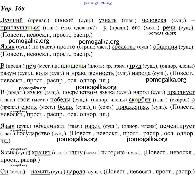 Готовые ответы - Русский язык 8 класс Тростенцова Л.А. - упражнение № 160