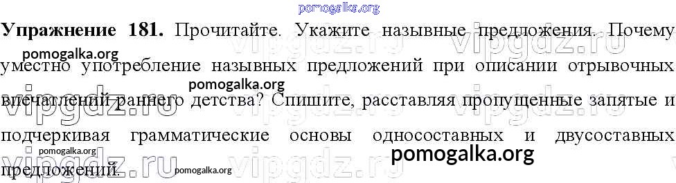 Готовые ответы - Русский язык 8 класс Тростенцова Л.А. - упражнение № 181