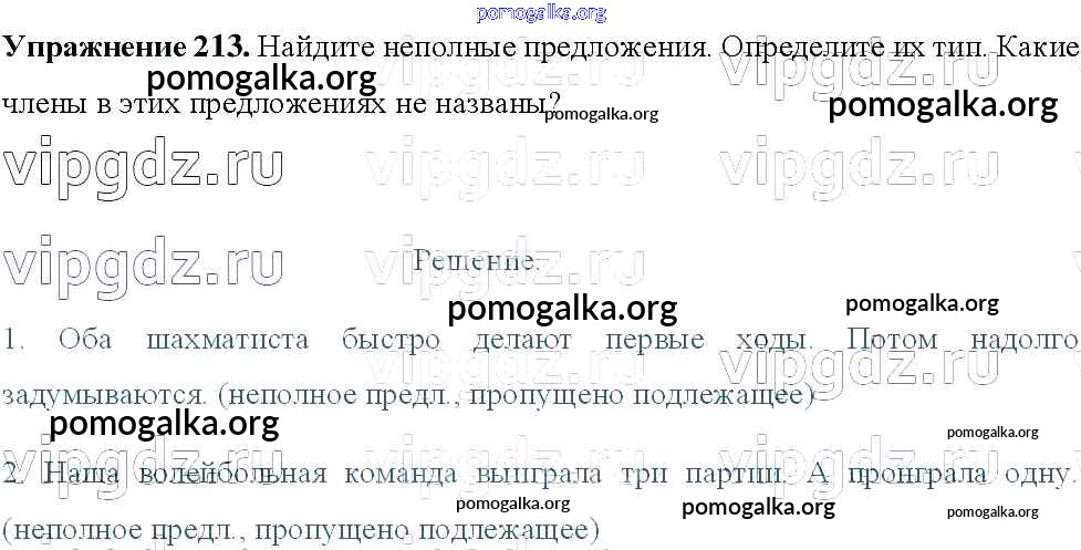 Готовые ответы - Русский язык 8 класс Тростенцова Л.А. - упражнение № 213