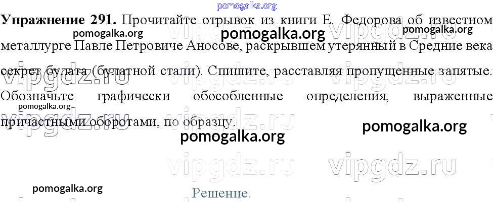 Готовые ответы - Русский язык 8 класс Тростенцова Л.А. - упражнение № 291