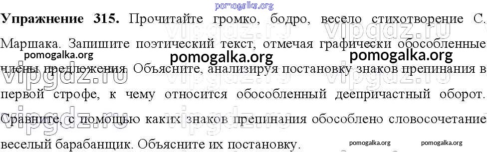 Готовые ответы - Русский язык 8 класс Тростенцова Л.А. - упражнение № 315