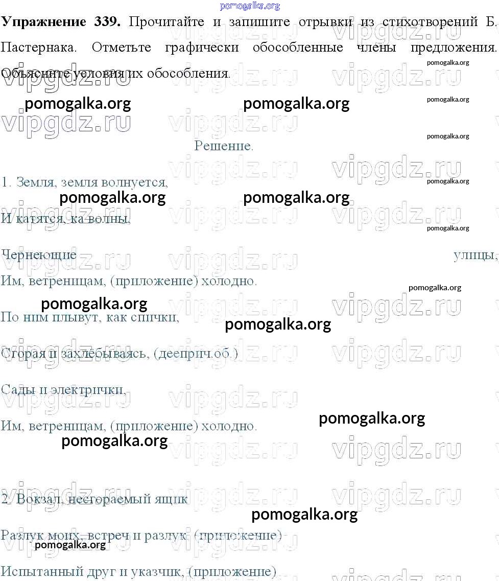 Готовые ответы - Русский язык 8 класс Тростенцова Л.А. - упражнение № 339