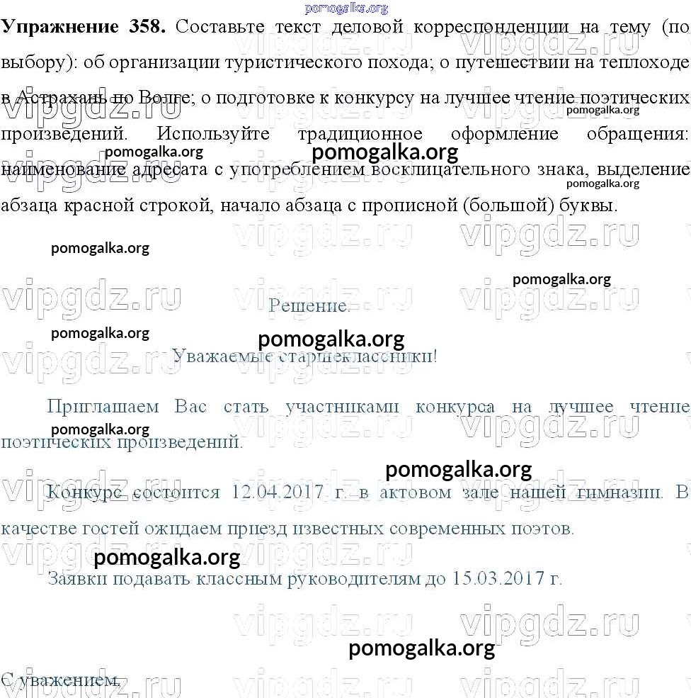 Готовые ответы - Русский язык 8 класс Тростенцова Л.А. - упражнение № 358