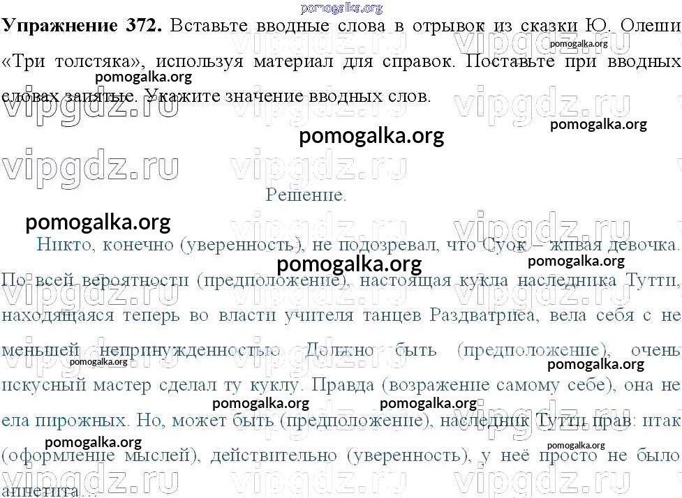 Готовые ответы - Русский язык 8 класс Тростенцова Л.А. - упражнение № 372