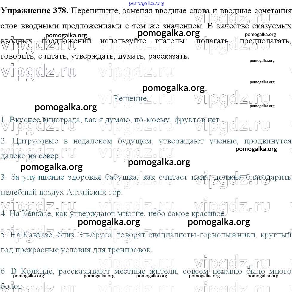Готовые ответы - Русский язык 8 класс Тростенцова Л.А. - упражнение № 378