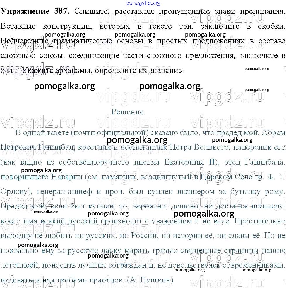 Готовые ответы - Русский язык 8 класс Тростенцова Л.А. - упражнение № 387