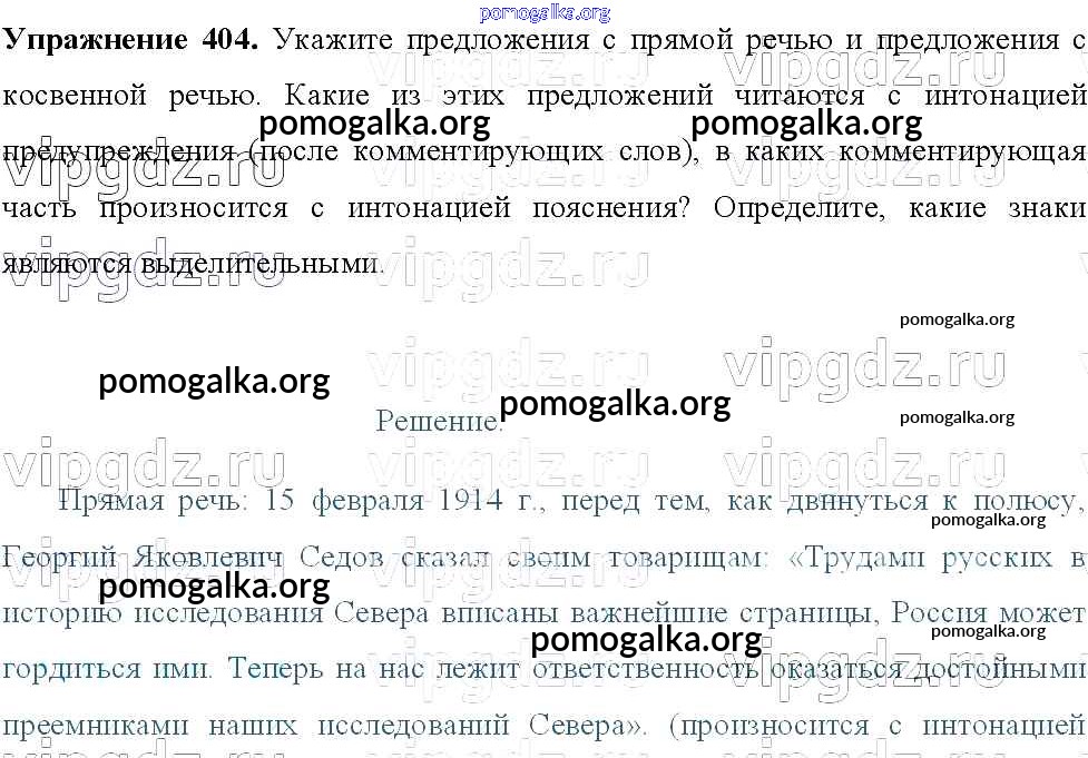 Готовые ответы - Русский язык 8 класс Тростенцова Л.А. - упражнение № 404